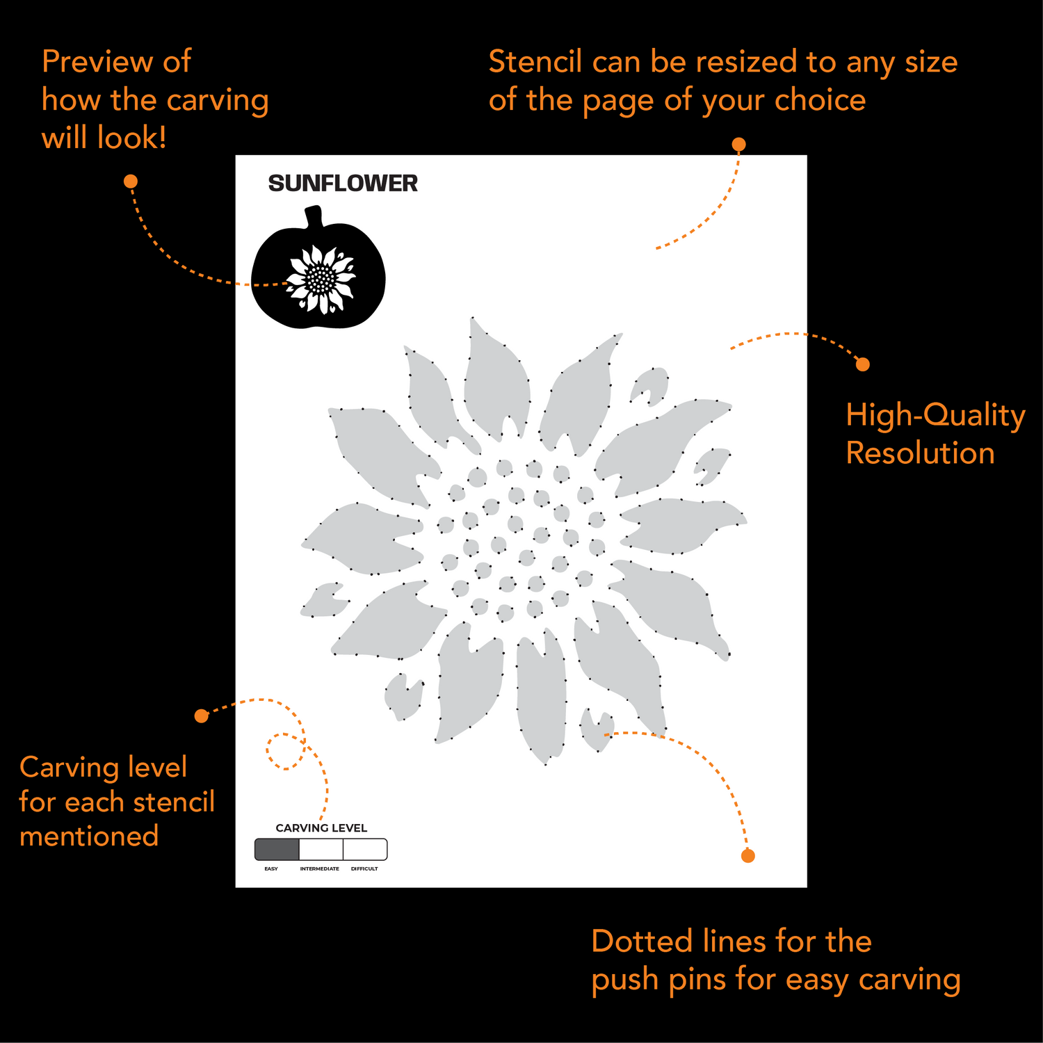 - Can easily be resized to any size according to the size of your pumpkin