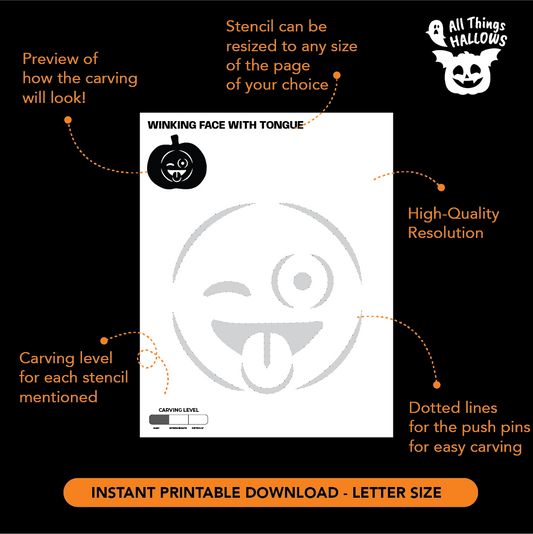 Winking Face With Tongue Emoji Pumpkin Stencil