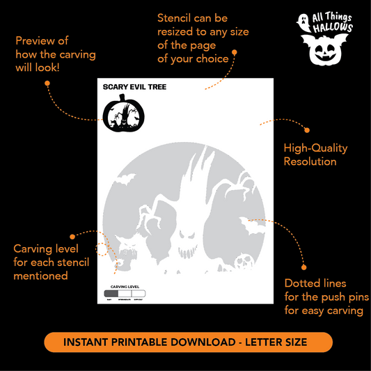 Scary Evil Tree Pumpkin Stencil