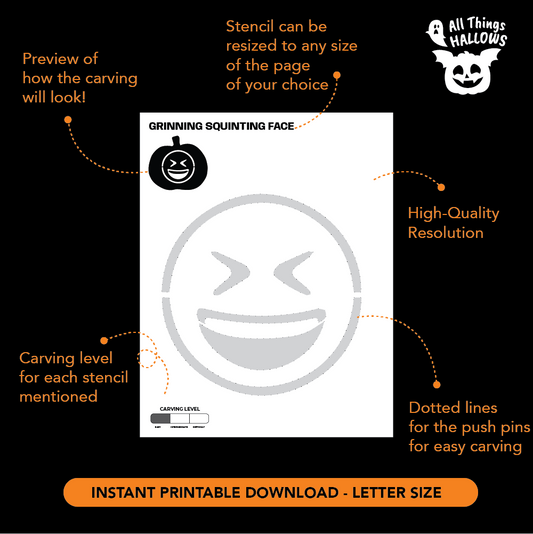 Grinning Squinting Face Emoji Pumpkin Stencil