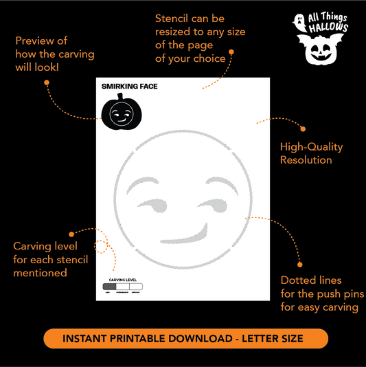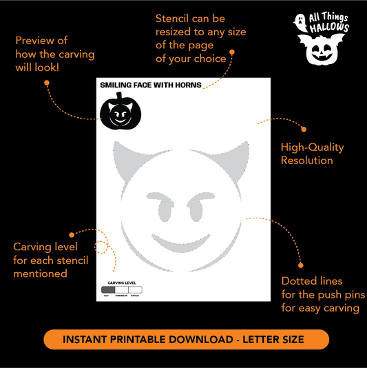 Smiling Face With Horns Emoji Pumpkin Stencil