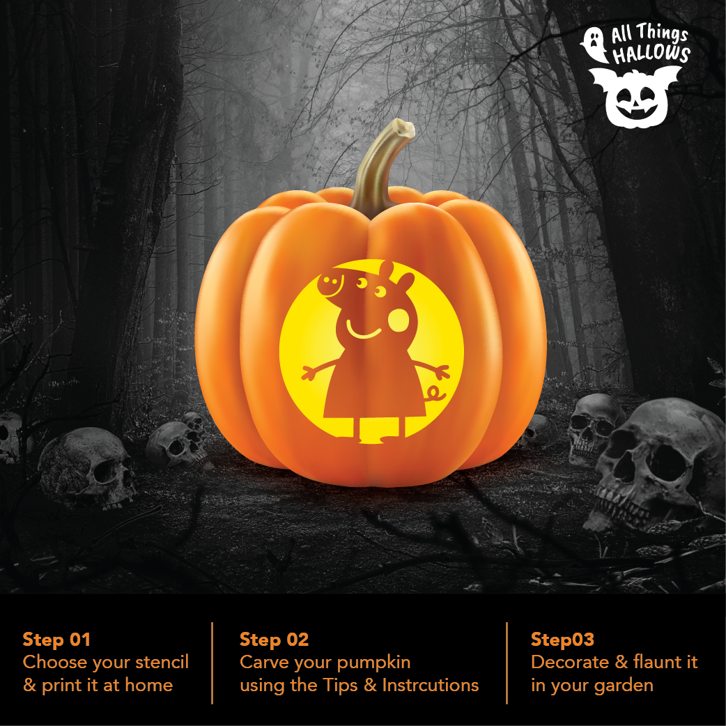 Why choose the Peppa Pig stencil? Peppa Pig is more than just a television character; she's a symbol of learning and fun that has captured the hearts of children worldwide. Incorporating Peppa into your Halloween decor is not only a nod to popular culture but also a fantastic way to make your celebration more inclusive and exciting for young guests. Plus, with Peppaโ€™s widespread popularity, your carved pumpkin is bound to be a hit among both the little ones and their parents.